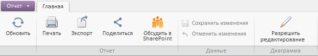 Вкладка ленты инструментов «Главная» у экспресс-отчета, открытого в режиме просмотра, может выглядеть следующим образом: