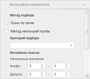 Для выполнения примера необходимо наличие на html-странице компонента WorkbookBox с наименованием «workbookBox» (см. «Пример создания компонента WorkbookBox». Отобразим панель автоподбора параметров экспоненциального сглаживания: