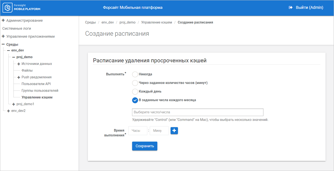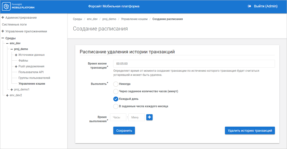 Удаление кэша с истёкшим сроком хранения. Для всех существующих кэшей задайте расписание удаления кэша с истёкшим сроком хранения, позволяющее избежать постоянного роста базы данных мобильной платформы. Срок актуальности кэша задается при импорте ресурса. Также удалить все устаревшие кэши можно вручную;