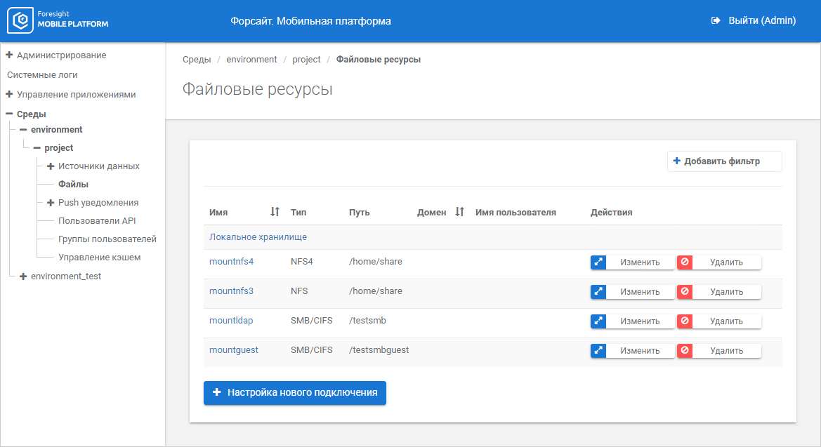 Настройка сред и проектов | Метод работы с ресурсами файлового сервера | Настройка пользователей API