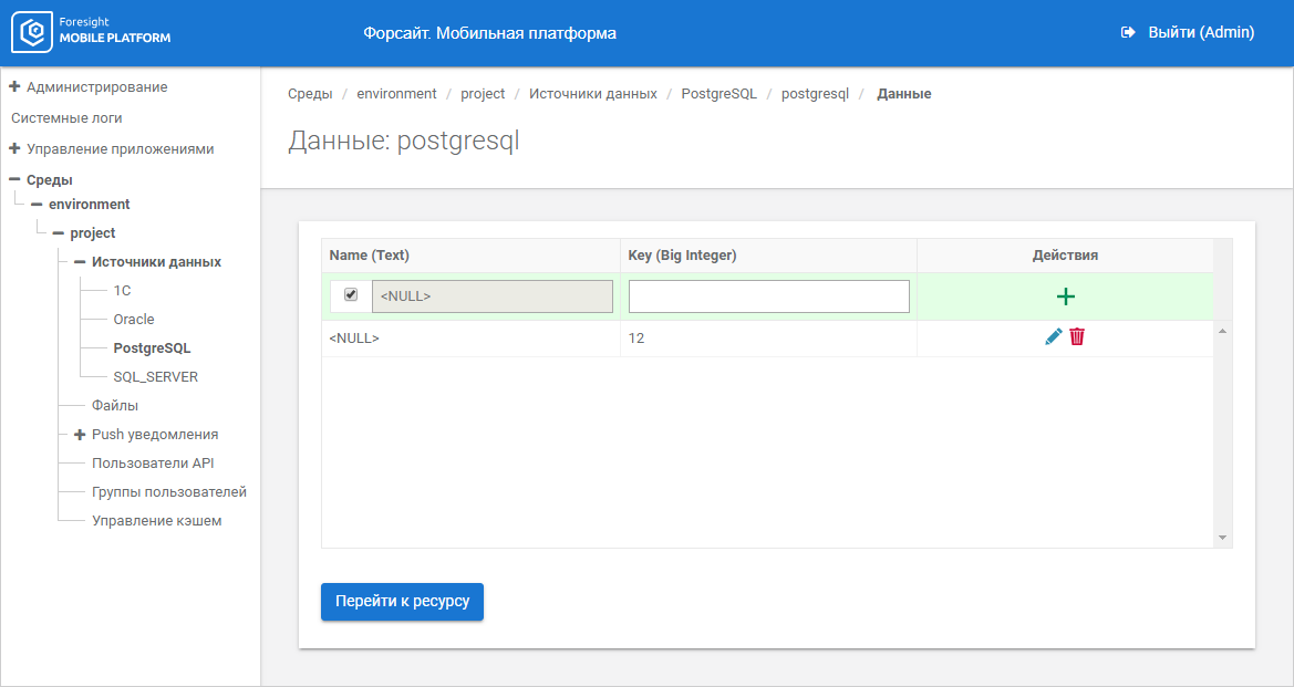 Важно. При задании названия ресурса, который будет создан в источнике данных, запрещено использование некоторых ключевых слов PostgreSQL. Для получения подробной информации о запрещенных ключевых словах обратитесь к документации PostgreSQL. При попытке использования запрещенных ключевых слов в названии ресурса будет выдано сообщение об ошибке.