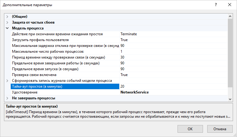 Для настройки таймаутов работы веб-сервера Internet Information Server: