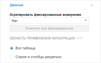 С помощью вкладки «Данные» на боковой панели укажите область применения фильтрации: ко всему визуализатору или отдельно к строкам и столбцам.