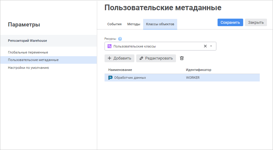 Примечание. Работа с пользовательскими классами доступна пользователям, состоящим в группе «Администраторы».