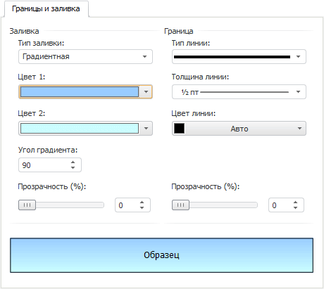 Вкладка «Границы и заливка» выглядит следующим образом: