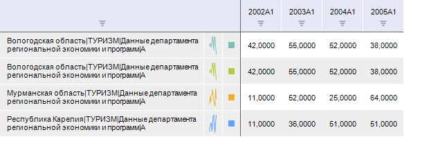Для отображения/скрытия спарклайнов нажмите кнопку