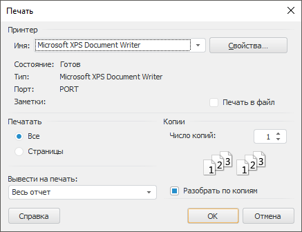 В настольном приложении настройка параметров печати выполняется с помощью диалога «Печать».