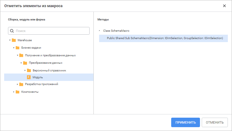 в настольном приложении в окне «Схемы отметки», которое доступно из навигатора объектов и инструментов продукта «Форсайт. Аналитическая платформа»: «Аналитические панели», «Аналитические запросы (OLAP)», «Отчёты».