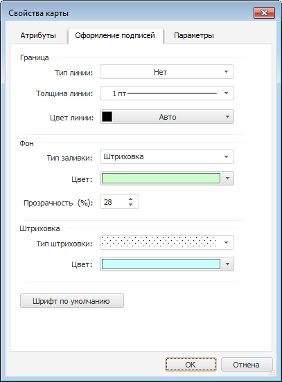 Для настройки оформления подписей территорий карты перейдите на вкладку «Оформление подписей» окна «Свойства карты».