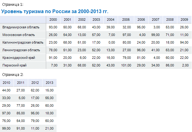 Таким образом, была произведена настройка параметров страницы так, чтобы при печати на каждой странице присутствовали колонтитулы, а также настроен вывод шапки и боковика области данных.