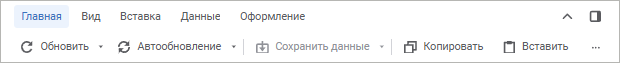 По умолчанию панель инструментов содержит системные вкладки и кнопки для построения и настройки отчёта: