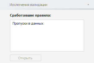 исключения отображаются в области выполнения валидации, если правило валидации выполнялось в экспресс-отчёте, аналитической панели, регламентном отчёте, на текущем листе рабочей книги или в текущей рабочей книги;