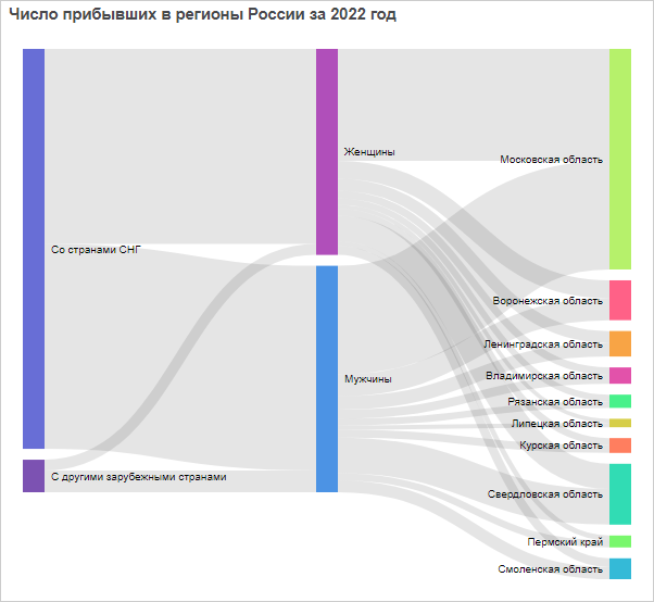Для Sankey-диаграммы доступны все операции с объектами, приведённые в разделе «Построение аналитической панели».