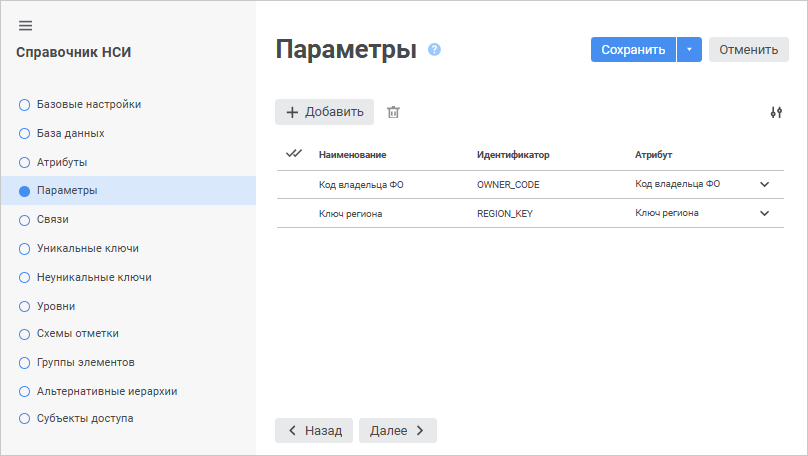 На странице «Параметры» в веб-приложении и настольном приложении возможно динамически изменять содержимое справочника. Справочники с заданными параметрами называются параметрическими.