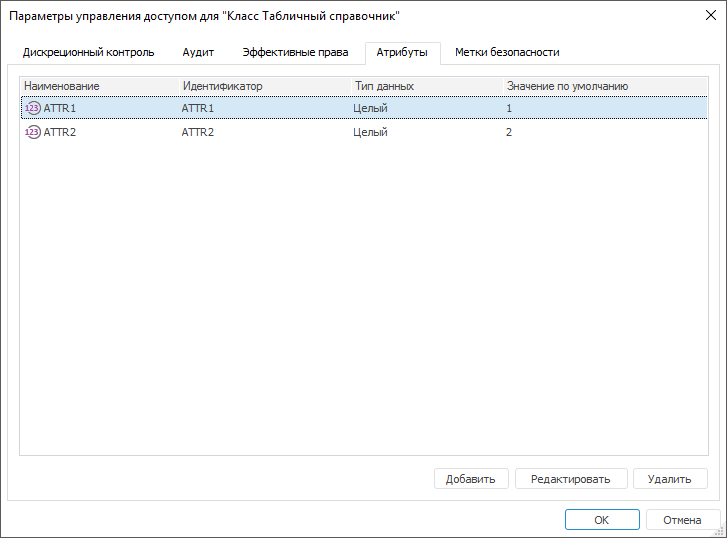 Примечание. При разделении ролей вкладка «Атрибуты» будет доступна только администратору информационной безопасности с привилегией «Изменение прав пользователей, раздача ролей, изменение политики», «Изменение метки безопасности и списка контроля доступа любого объекта».