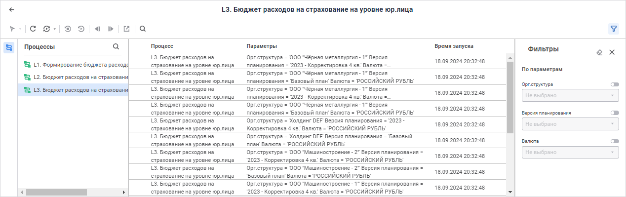При выборе нескольких параметров фильтрация выполняется только для сочетания параметров в экземпляре процесса.