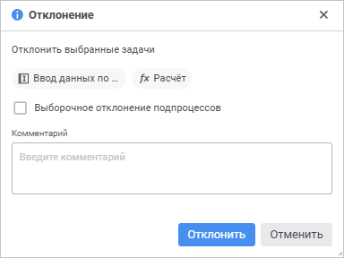 Примечание. После установки флажка «Выборочное отклонение подпроцессов» способ исполнения будет изменен с автоматичекого на ручной.