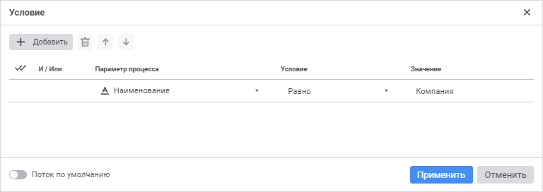 1. При необходимости используйте статус условия «По умолчанию». Для этого установите флажок «Поток по умолчанию».