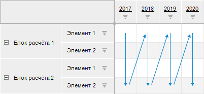 Примечание. Порядок расчёта блоков агрегации в дереве расчёта учитывается только при использовании поточечного расчёта конкретных формул расчёта. При использовании поточечного расчёта алгоритма порядок расчёта блоков агрегации зависит от выбранного способа расчёта.