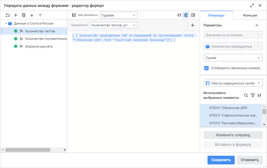 Для работы с формулой доступны следующие операции: