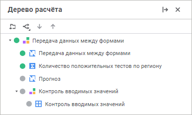 Элементы алгоритма расчёта будут рассчитаны в том порядке, в котором они следуют в дереве расчёта.