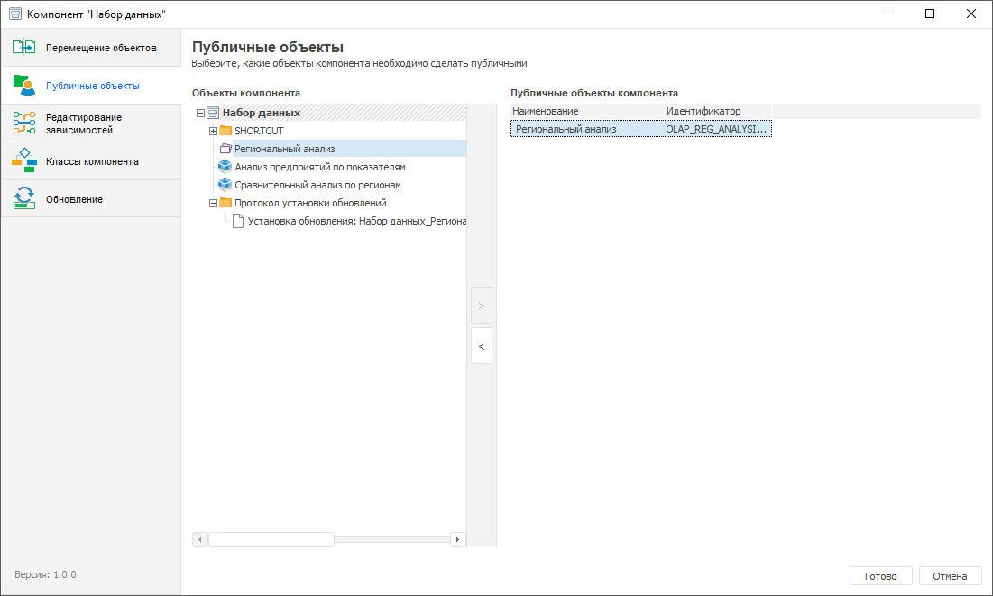 После настройки публичных объектов перейдите к выбору используемых классов объектов, которые относятся к данному компоненту.