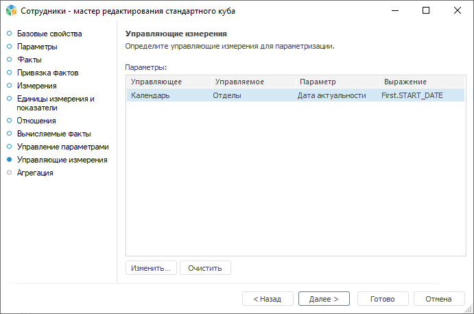 Управление параметрами измерения используется для динамического изменения значений элементов измерения в зависимости от значений параметра формы или для ограничения доступных значений частного измерения показателя.