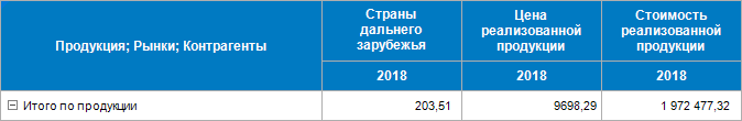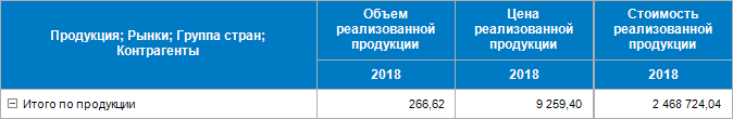 Аналогично отображение таблицы остается без изменений при скрытии наименования только показателя «Стоимость реализованной продукции», а также при одновременном скрытии наименований показателей, у которых отсутствуют частные измерения. Это связано с тем, что после скрытия наименования показателя/показателей необходимо отобразить строку, в которой находятся элементы частного измерения, но у показателя/показателей частные измерения отсутствуют.