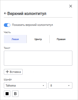 Для настройки колонтитулов на странице используйте группы параметров «Верхний колонтитул», «Нижний колонтитул» панели параметров: