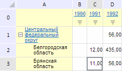 В результате выполнения примера столбец-заголовок таблицы был отображён в виде иерархии, о чём свидетельствует наличие кнопки развёртывания: