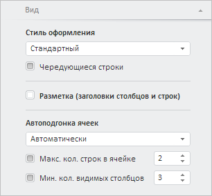 Для выполнения примера необходимо наличие на html-странице компонента WorkbookBox с наименованием «workbookBox» (см. «Пример создания компонента WorkbookBox». Отобразим панель «Вид»: