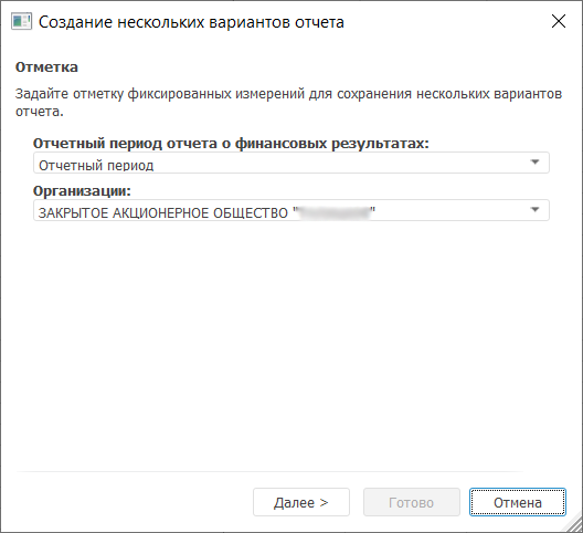 Пакетные операции - операции, выполняемые для нескольких вариантов отчета. Варианты отчета формируются по отметке элементов фиксированных измерений, которая задается с помощью элементов управления, общих для всех листов отчета.