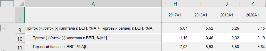 После применения функции в таблицу данных после последнего выделенного ряда будет добавлен ряд с наименованием вида «<Имя_Ряда_1>+<Имя_Ряда_2>+...+<Имя_Ряда_n>», содержащий результаты расчета. Например: