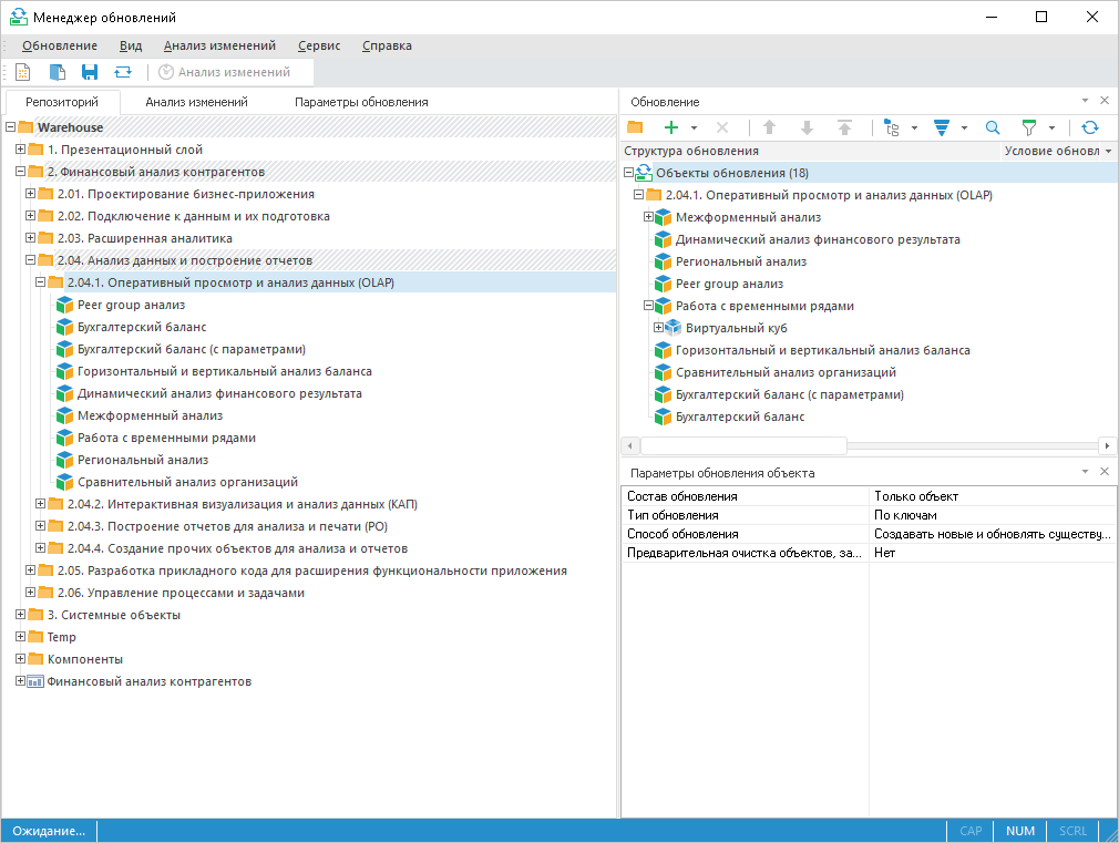 Раздел «Перенос объектов между репозиториями и их обновление» содержит описание менеджера обновлений продукта «Форсайт. Аналитическая платформа».