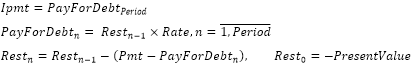 Метод Ipmt возвращает сумму платежей процентов по инвестиции за данный период на основе постоянства сумм периодических платежей и постоянства процентной ставки.