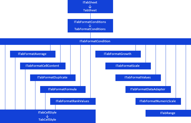 Интерфейс ITabFormatConditions имеет следующую иерархию: