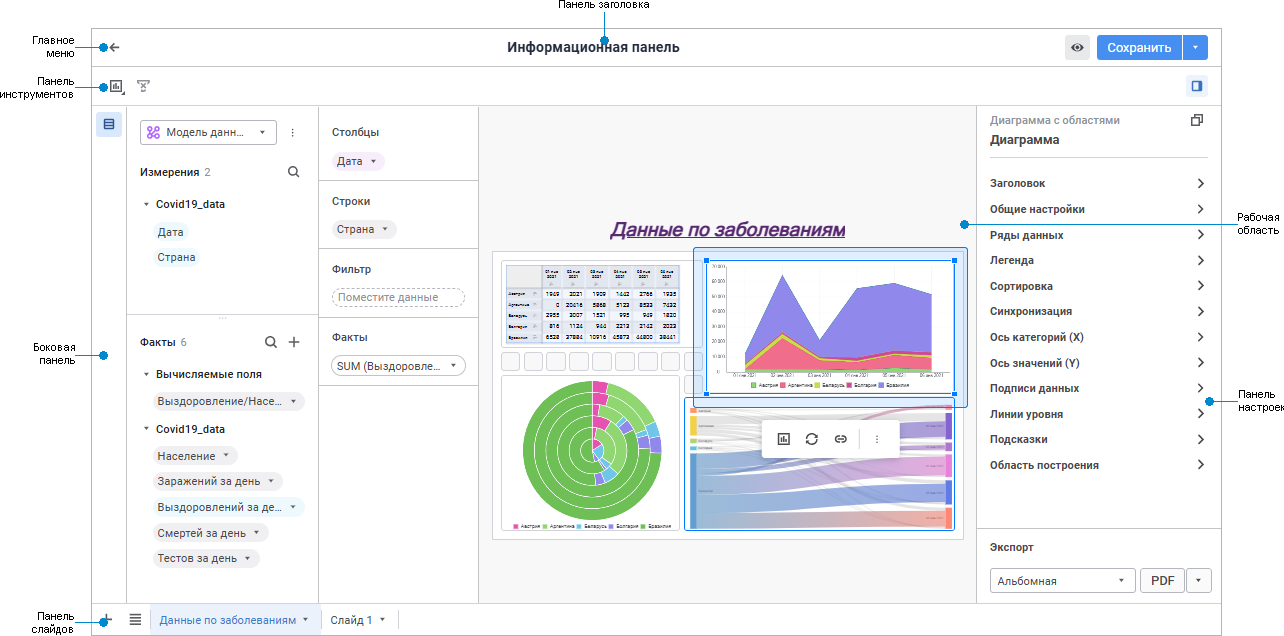Для работы с готовой информационной панелью смотрите статью «Работа с готовой информационной панелью».