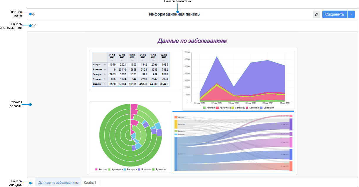 Для начала работы с инструментом создайте новую или откройте готовую информационную панель.