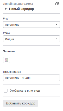 Для настройки параметров коридоров линейной диаграммы используйте группу параметров «Коридоры диаграммы» панели настроек.