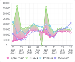 Коридор диаграммы - выделенная часть области построения, находящаяся между двумя рядами линейной диаграммы. Доступно создание нескольких коридоров.