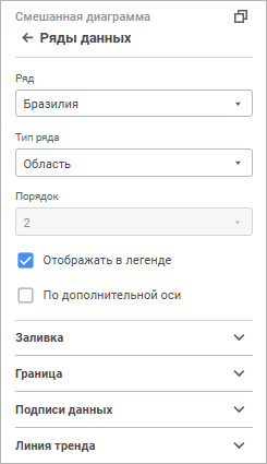 Для настройки рядов данных диаграммы используйте группу параметров «Ряды данных» панели настроек.
