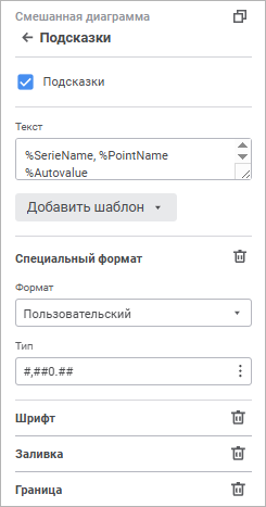 Установите флажок «Подсказки» для отображения подсказок на диаграмме и задайте параметры: