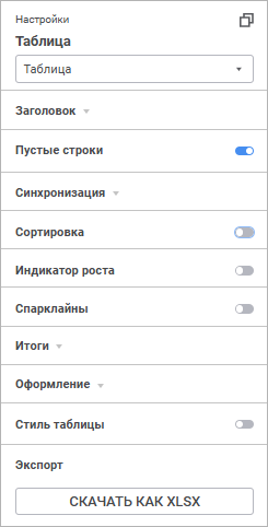 При работе с информационной панелью в режиме редактирования для настройки визуализации данных используются боковая панель и панель настроек.