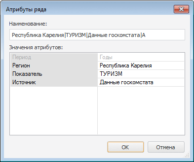 Примечание. Если в источнике данных уже содержится временной ряд с указанными значениями атрибутов, то значения наблюдений ряда будут отображены в таблице данных.