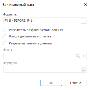 Для расчёта изменения показателя необходимо настроить вычисляемый факт.
