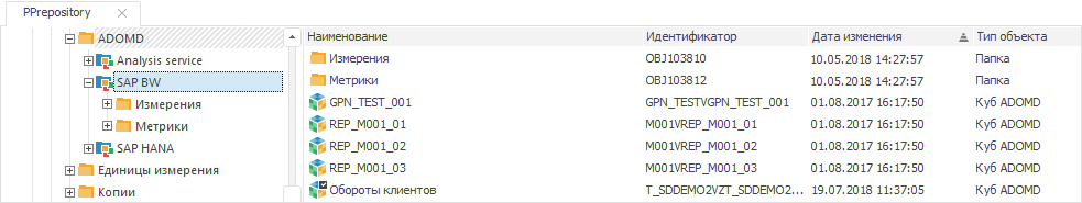 Для созданного в репозитории каталога ADOMD выполните команду контекстного меню «Обновить». Дождитесь пока «Форсайт. Аналитическая платформа» по полученным с сервера метаданным создаст все необходимые объекты - справочники ADOMD и кубы ADOMD: