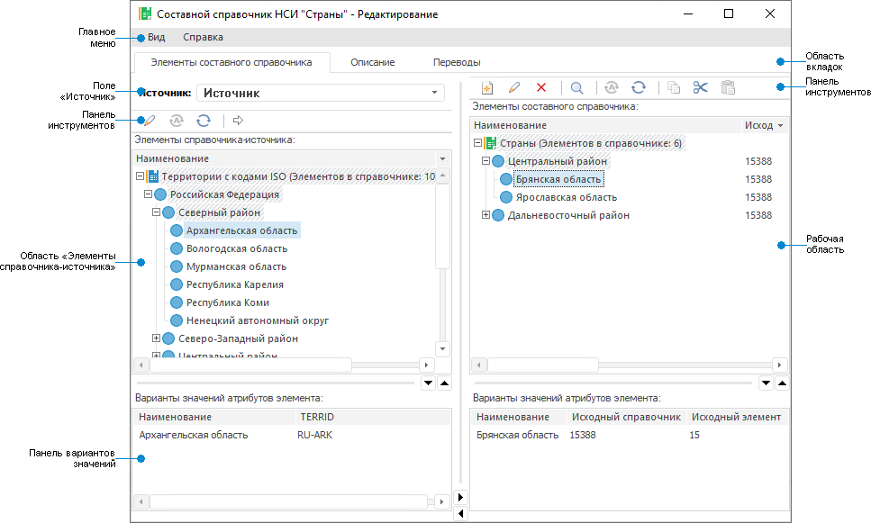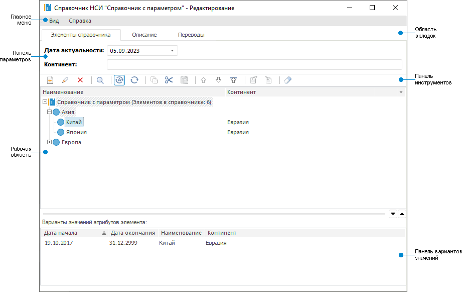 Примечание. Работа со справочником НСИ в веб-приложении доступна в новом и старом интерфейсах. Старый интерфейс аналогичен интерфейсу справочника НСИ в настольном приложении. При необходимости для работы со справочником НСИ в старом интерфейсе добавьте поле modules в конфигурационном файле config.json.