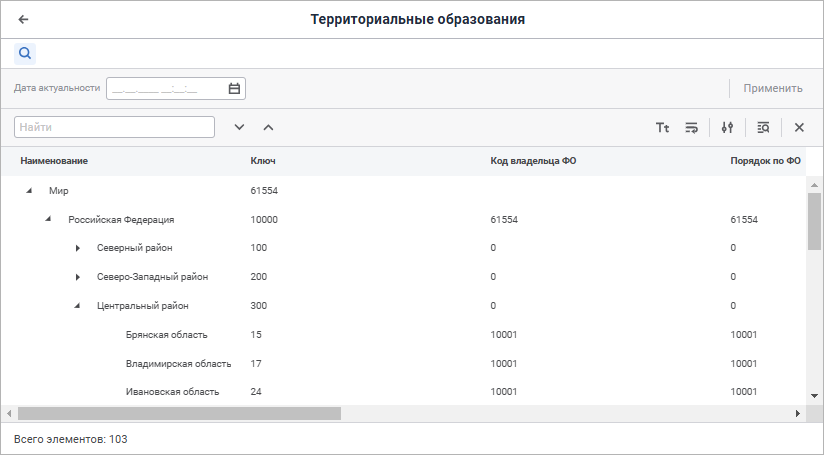 Примечание. При открытии справочника отображаются только первые 100 элементов, остальные элементы загружаются последовательно в режиме реального времени.