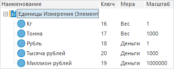 Примечание. Пересчет единиц измерения будет недоступен, если в мастере базы данных временных рядов на странице «Репозиторий НСИ» установлен флажок «Является обязательным атрибутом ряда». Справочник единиц измерения будет представлен отдельным измерением, без автоматического пересчета данных во все единицы измерения.