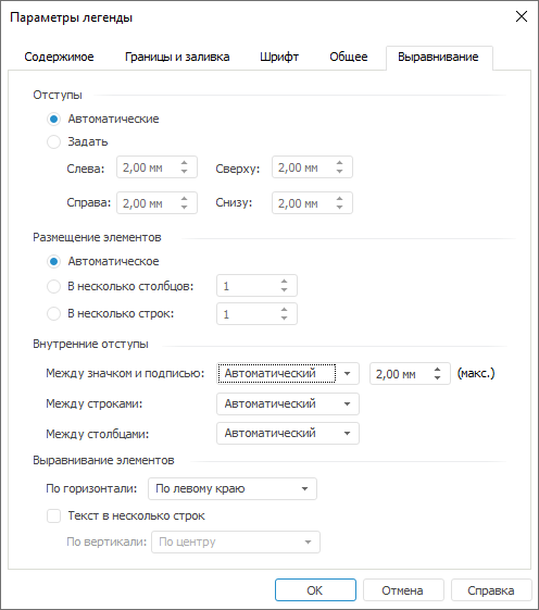 Для настройки выравнивания общей легенды перейдите на вкладку «Выравнивание» окна «Параметры легенды».